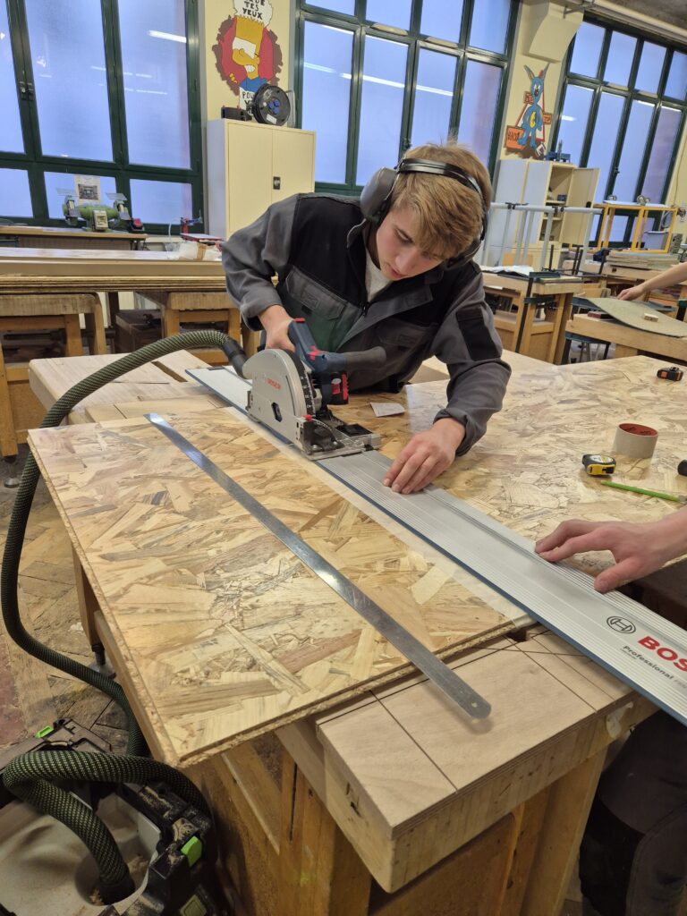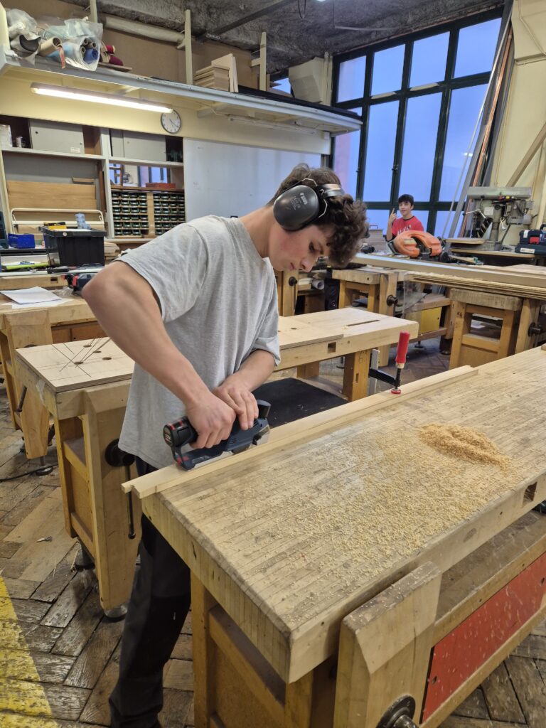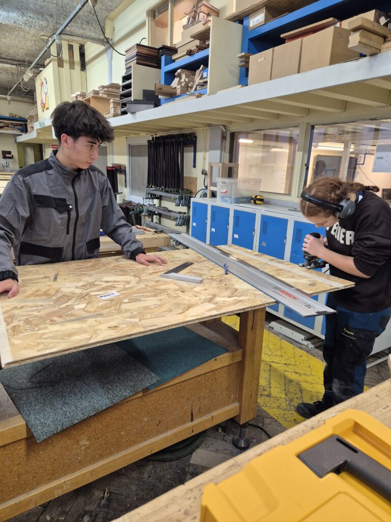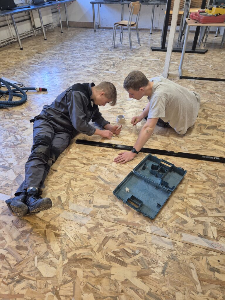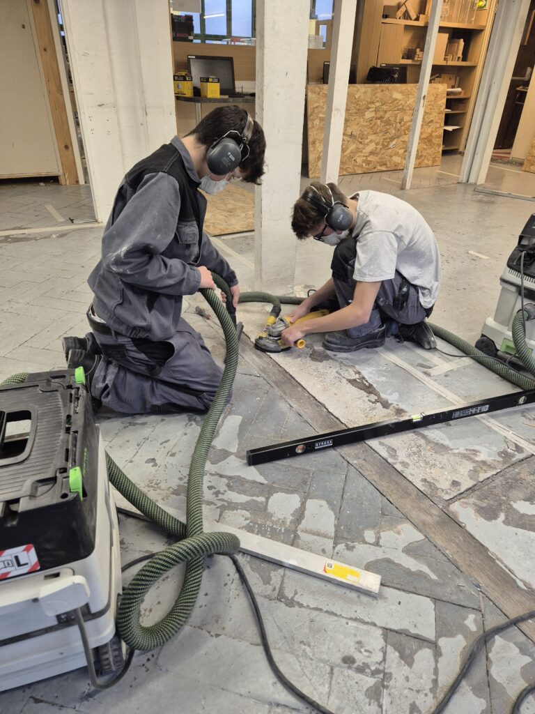 Dans le cadre de leur formation, les élèves de 1ère TMA ont travaillé sur la modernisation du sol de la salle de cours de l’atelier de menuiserie.